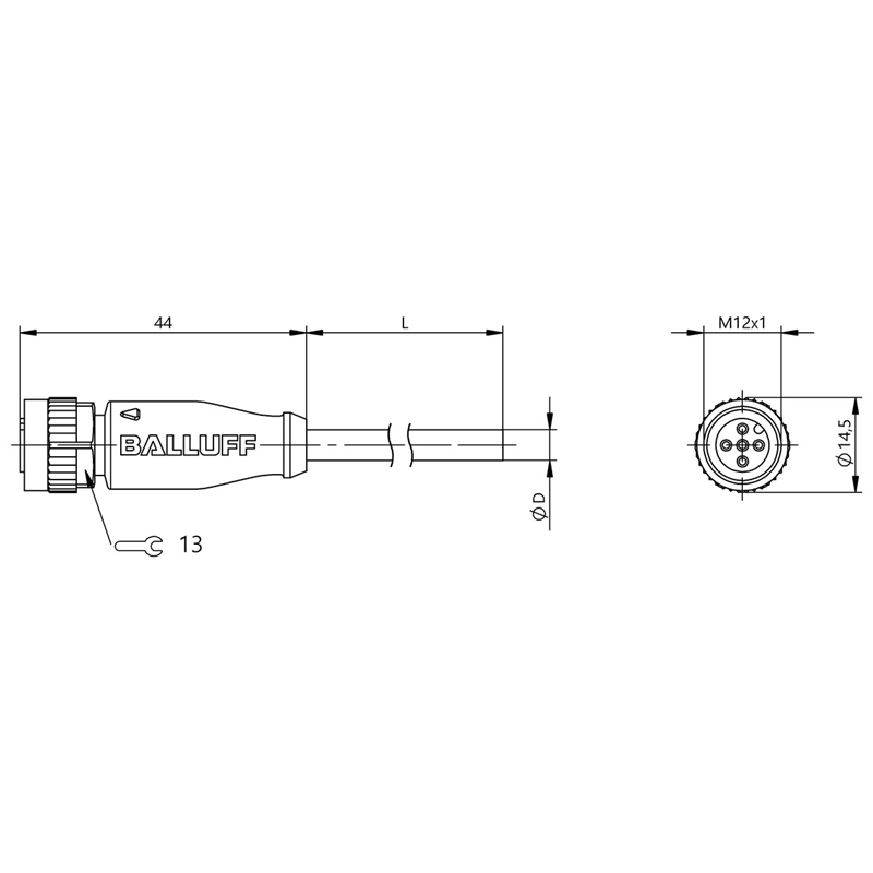 • Type: Câble de connexion M12 x 1, surmoulé