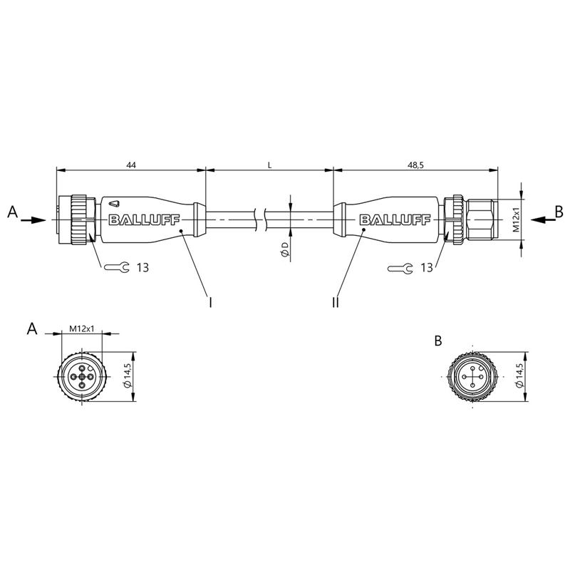 • Type: Câble de connexion, M12 x 1 / M12 x 1