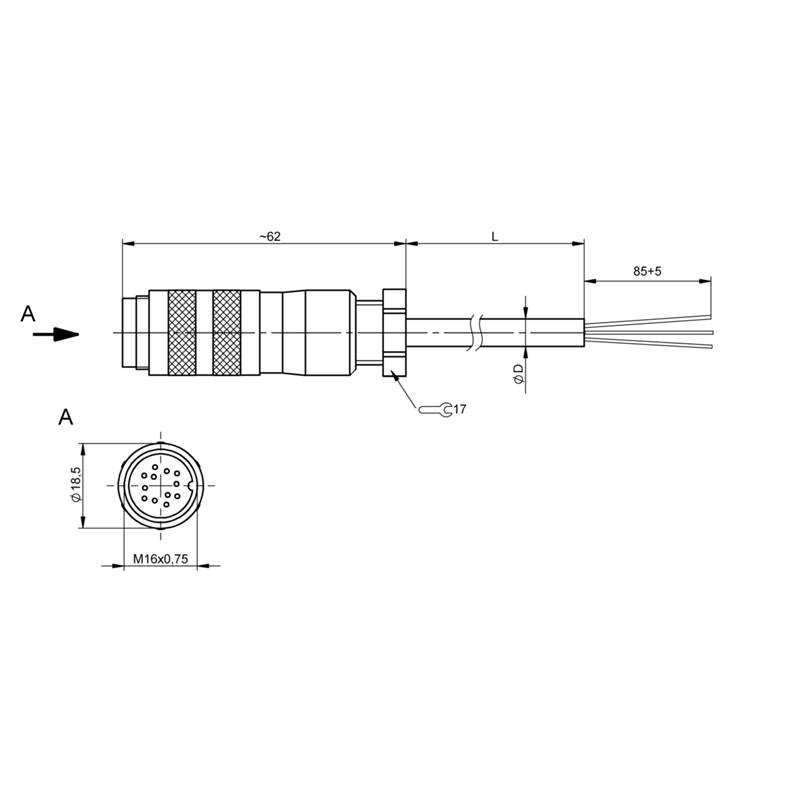 • Raccordement A: Connecteur M16, mâle, droit, 12 pôles