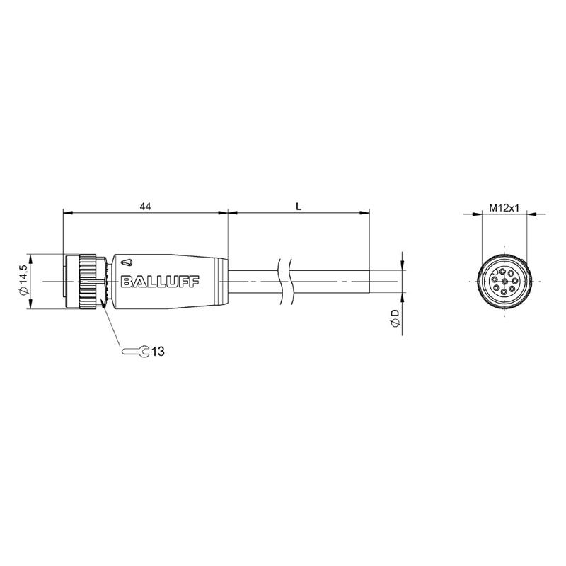 Connecteur / Câble de raccordement; Type: Câble de connexion, M12 x 1, surmoulé; Raccordement A: Connecteur M12, femelle, droit, 8 pôles, codé A; Raccordement B: Extrémité de câble libre; Câble: 30.00 m, PUR, sans halogène, 8 fils (8 x 0.25 mm²), noir; Blindage: Non blindé; Compatible chaînes porte-câbles: Oui (2 Mio.), 5 m/s²; Corps de poignée: PUR, noir; Matériau de l'écrou-raccord: Zinc moulé sous pression; Tension d'emploi Ub: 30 VDC / 30 VAC; Courant nominal (40 °C): 2.0 A; Classe de protection: IP67, IP68, IP69K; Température de câble, chaîne porte-câble: -25…60 °C; Température de câble, pose fixe: -50…80 °C; Température de câble, pose flexible: -25…80 °C; Homologation / conformité: CE, cULus, EAC, WEEE