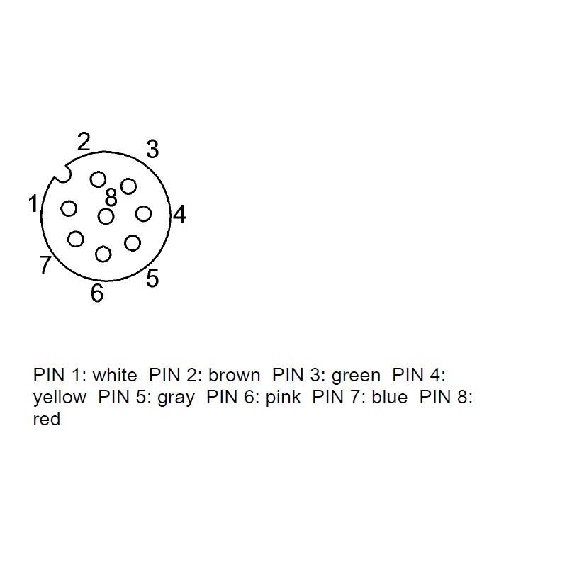 • Raccordement A: Connecteur M12, femelle, droit, 8 pôles, codé A