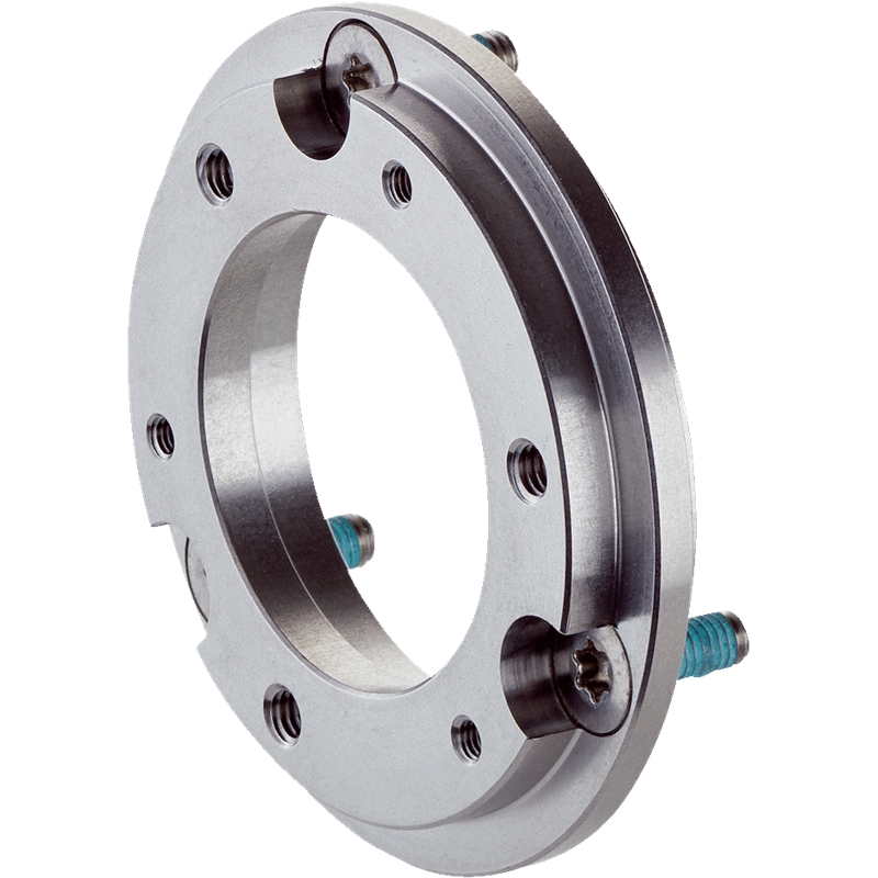 Bride de montage; Description: Adaptateur à bride, adaptation d’attache de centrage de bride de serrage 36 mm sur bride synchro 50 mm; Matériau: Acier inoxydable; Compris dans la livraison: Incluant 3 vis à tête fraisée avec revêtement Precote 85-8 ; M4*14