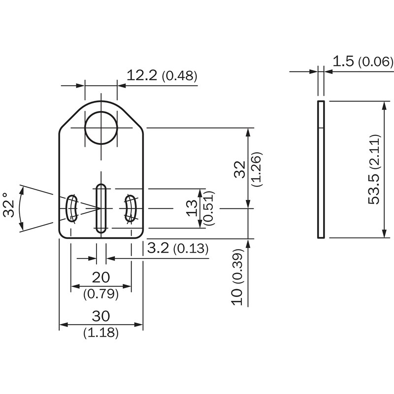 Équerre et plaque de fixation; Description: Plaque de fixation pour capteurs M12; Matériau: Acier inoxydable; Compris dans la livraison: Sans matériel de fixation