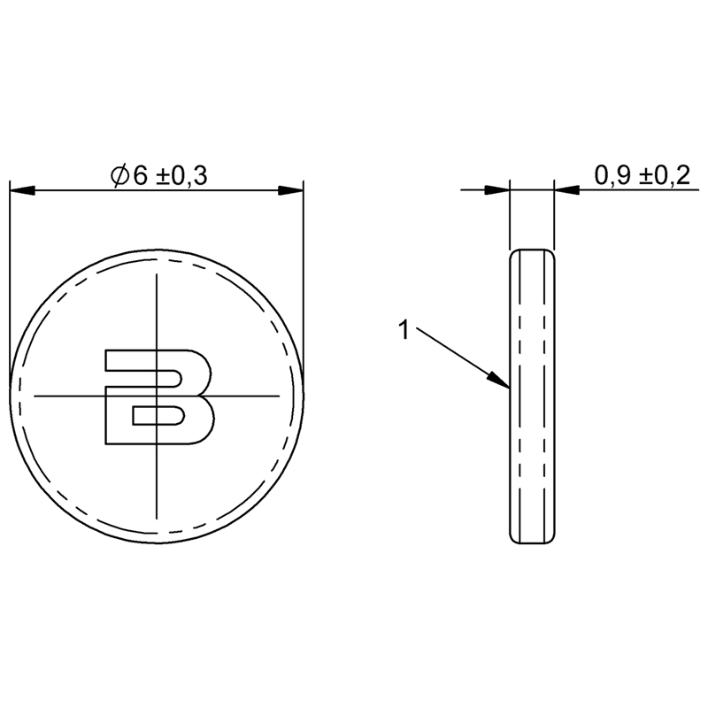Support de données HF (13,56 MHz); Forme d'antenne: Ronde; Montage: Noyé dans le métal; Numéro de série UID, en lecture seule: 8 octets; Type de mémoire: EEPROM; Types de support de données pris en charge: DIN ISO 15693; Données utilisateur, lire/écrire: 112 octets; Dimensions: Ø 6 x 0.9 mm; Matériau du boîtier: Epoxy ELER-8; Classe de protection: IP67; Température ambiante: -25...55 °C; Température de stockage: -25...85 °C; Homologation / conformité: CE, UKCA, WEEE; Série: BIS-M