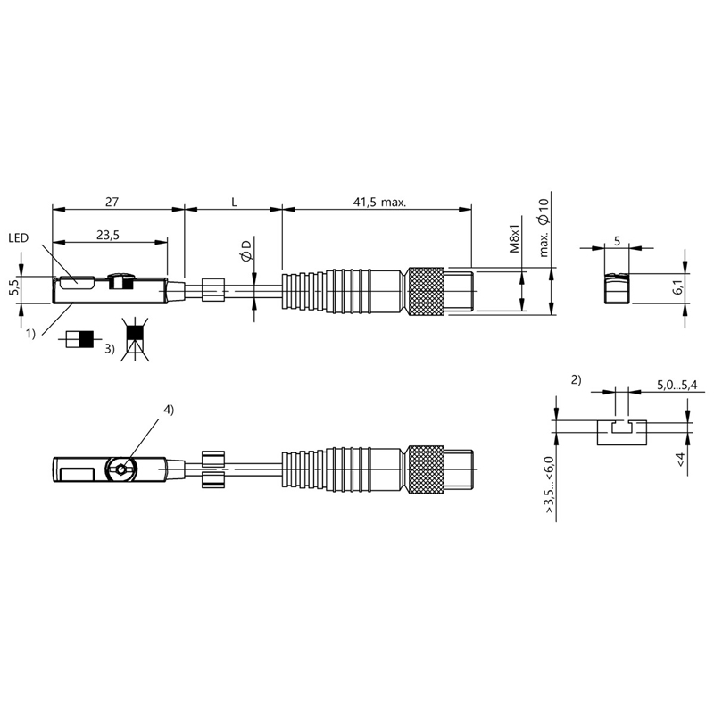 Capteur de proximité magnétique ; Type: pour vérins à rainure en T; Format: Parallélépipédique; Sortie de commutation: PNP; Type de commutation: Contact à fermeture (NO); Fréquence de commutation: 3000 Hz; Mode de raccordement: Câble avec connecteur M8, 3 pôles, 0.5 m, PUR; Tension d'alimentation: 10-30Vdc; Dimensions: 23,5 x 5 x 5,5 mm; Matériau boîtier: PA 12; Fixation: Insérable par le haut dans la rainure en T; Classe de protection: IP67 (IEC 60529); Température ambiante: -25…85 °C; Homologation / conformité: cULus, CE, UKCA, WEEE