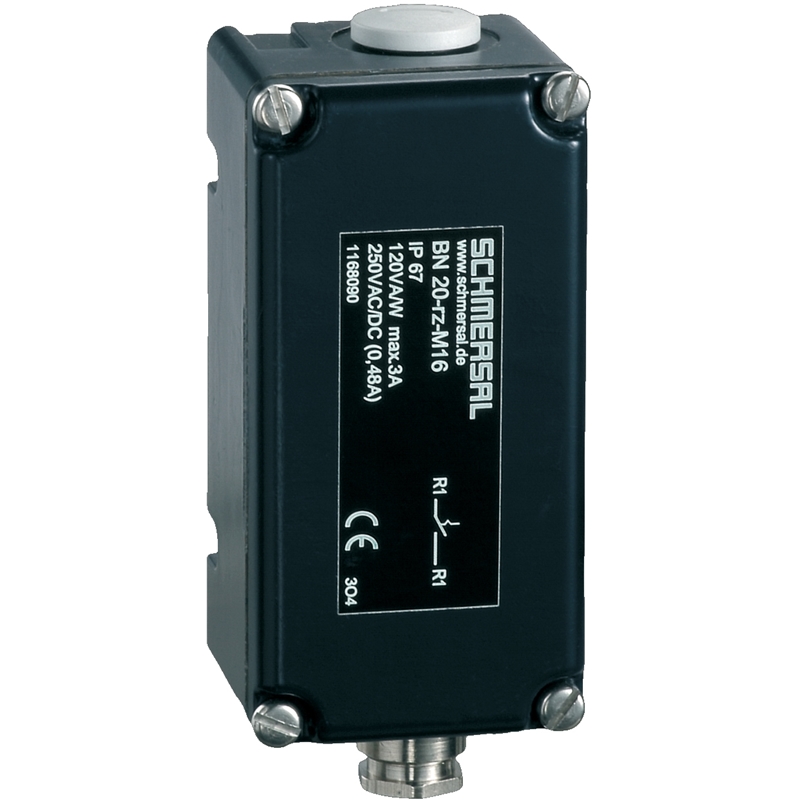 Interrupteur magnétique ; Mode d’action: Magnétique; Modèle de boîtier: Rectangulaire; Aimant de correction: Oui; Nombre de contacts bistables: 2; Exécution: Contacts Reed; Tension commutable, max.: 250 VAC; Courant commutable, max.: 3 A; Surface active: Latéral; Actionneur: Aimant (Non inclus); Distance de commutation Sn: Jusqu'à 50 mm, en fonction de l'aimant; Raccordement: 1 conduit M16 x 1.5; Dimensions: 104 mm x 52 mm x 47 mm; Matériau du boîtier: Aluminium; Surface active: Métal; Etanchéité: IP67; Température ambiante: -25 °C ... +90 °C; Série: BN 20C
