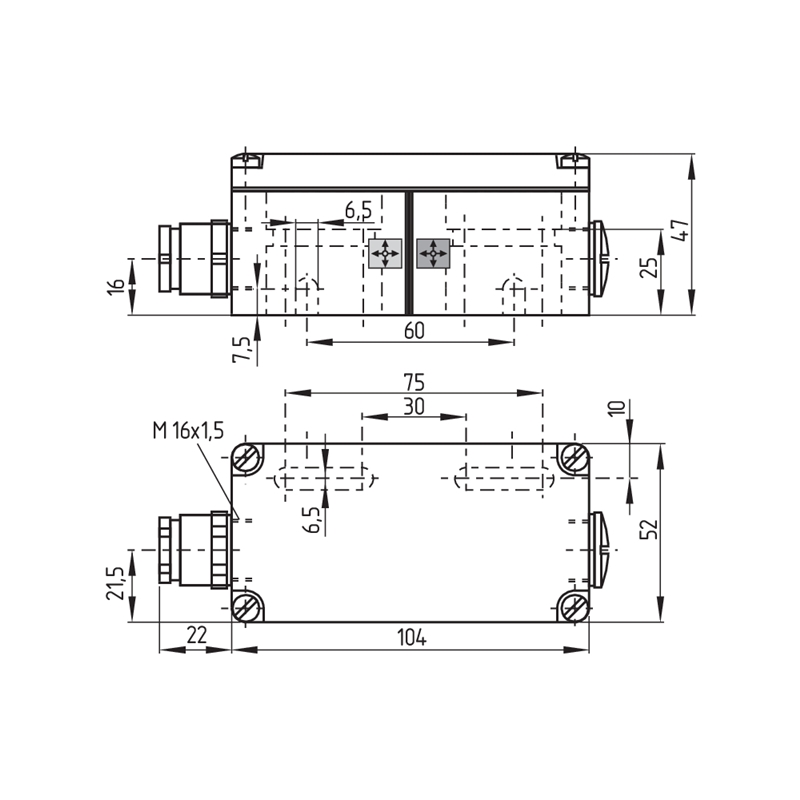 • Dimensions: 104 mm x 52 mm x 47 mm