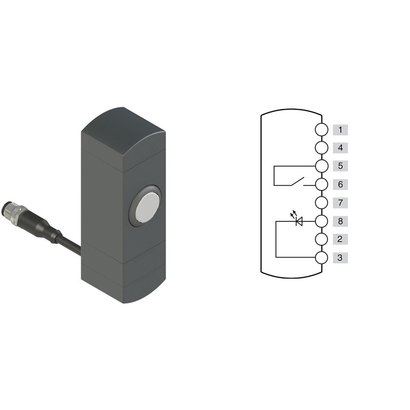 • Connexion et sens de sortie: Connecteur M12 à 8 pôles, câble 0.2 mètres, latéral orientable
