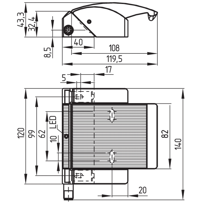 • Dimensions (L x l x P): 43,3 mm x 119,5 mm x 140 mm