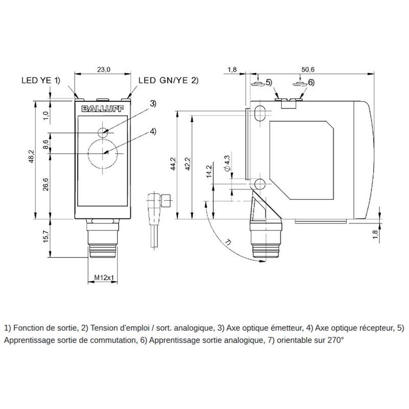 Capteur de mesure de distance; Format: Parallélépipédique; Principe de détection: Directe sur l'objet; Principe du capteur: Mesure de la propagation de la lumière, optique collimaté; Portée: 100...5000 mm; Fidélité de répétition: 0,024 % P.E.; Résolution: max. 5,0 mm; Source d'émission: Laser à lumière rouge; Taille du spot lumineux: 5.5 x 7 mm à 5 m; Sortie analogique: 0…10 V linéaire croissant/décroissant; Sortie de commutation: PNP/NPN/Auto-Detect; Type de commutation: Contact à fermeture/ouverture (NO/NF); Mode de commutation: Commutation claire/sombre; Fréquence de commutation: 250 Hz; Raccordement: Connecteur mâle M12 5 pôles; Tension d'alimentation: 18-30Vdc; Dimensions: 51 x 23 x 52,4 mm; Matériau du boîtier: ABS; Classe de protection: IP67; IP69K (DIN 40050); Température ambiante: -40...50 °C; Homologation / conformité: CE, cULus, EAC, Ecolab, WEEE; TYpe: Washdown; Série: 23K