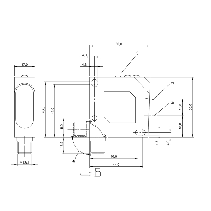 • Mode de raccordement: Connecteur mâle M12, 4 pôles, orientable
