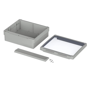 Partie inférieure, haute; Dimensions: 260 x 228 x 105 mm; Coloris: Gris clair, analogue à RAL 7035; Type de protection: IP 65 ; Matériau du boîtier: ABS, PC ; joint CR; Fourniture: 1 partie inférieure, haute; Série: Bocard