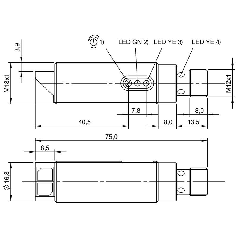 • Format: Cylindrique filété, M18 x 1, faisceau radial