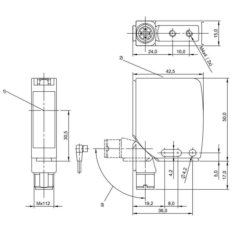 • Raccordement: Connecteur mâle M12, 4 pôles, orientable