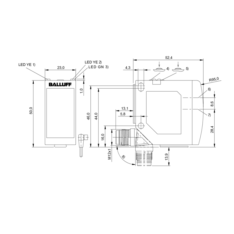 • Dimensions: 23 mm x 51 mm x 52,4 mm