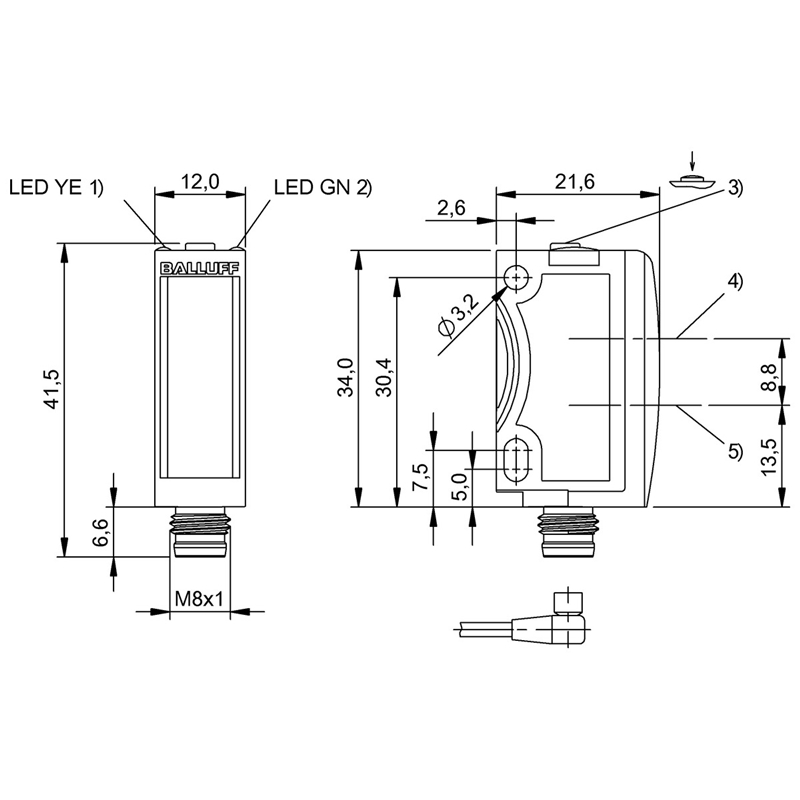 • Raccordement: Connecteur mâle M8, 4 pôles