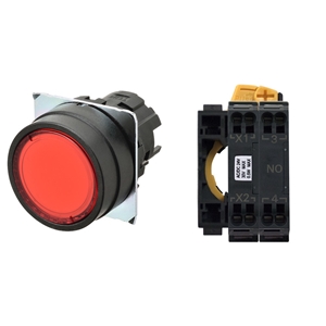 Bouton-poussoir A22NL Ø22, lentille plastique, Plat, Alterné, Couleur bouton Rouge transparent, DEL Rouge, 1NO, 100-120 VAC