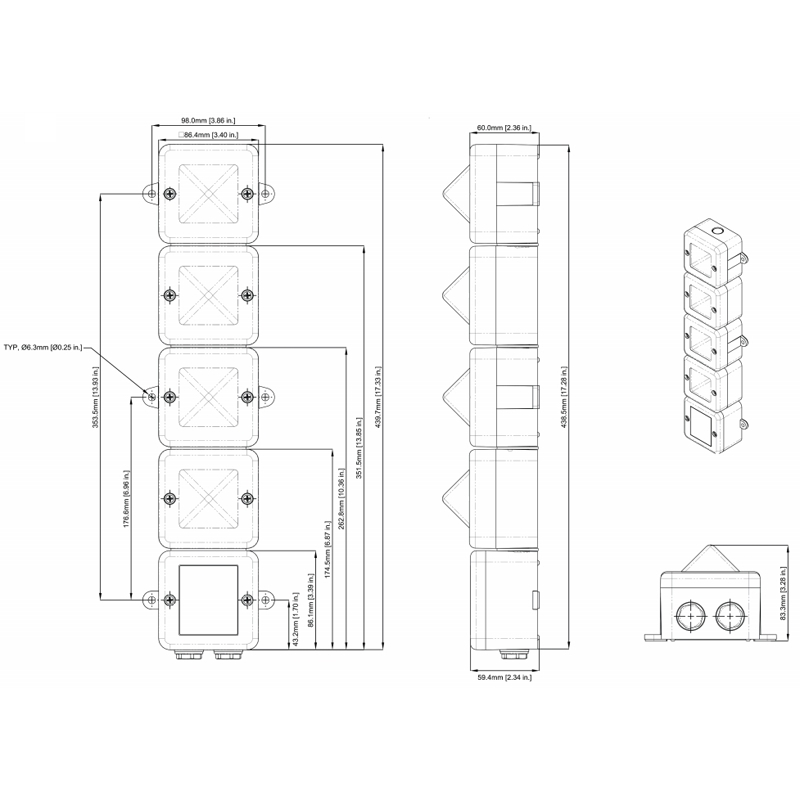 Boitier précâblé pour 4 feux Alimentation AC -Boitier rouge IP66