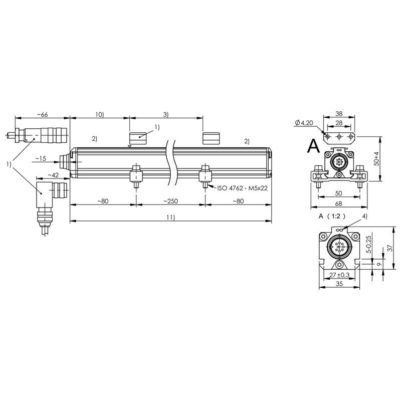 Système de mesure de position magnétostrictif; Forme: Série Profil; Montage: Brides de fixation; Capteur de position, nombre max.: 2 ; Interface: Analogique, tension 0-10V / 10-0V; Longueur de mesure: 300 mm; Fidélité de répétition: ± 10 µm; Écart de linéarité: ± 50 µm; Fréquence de mesure max.: 2000 Hz; Raccordement: Connecteur mâle M16x0,75 8 pôles; Tension d'emploi Ub: 10-30Vdc; Version mécanique: Profil quadratique - 37 x 35 mm; Matériau du boîtier: Aluminium; Classe de protection: IP67; Température ambiante: -40...85 °C; Homologation / conformité: CE, cULus, UKCA, WEEE; Série: BTL7-P