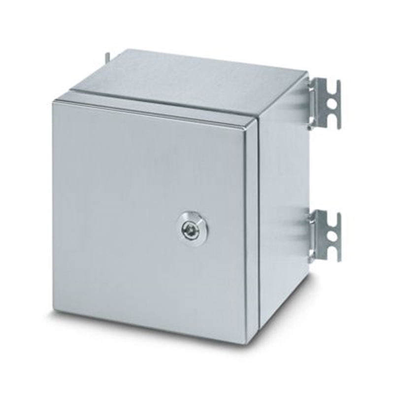 Coffret de commande, avec porte à charnières et bouchon quart de tour, y compris plaque de fond, sans flasques, Matériau: Acier inoxydable 316L / 1.4404, Surface : brossée, argenté, Porte avec charnière