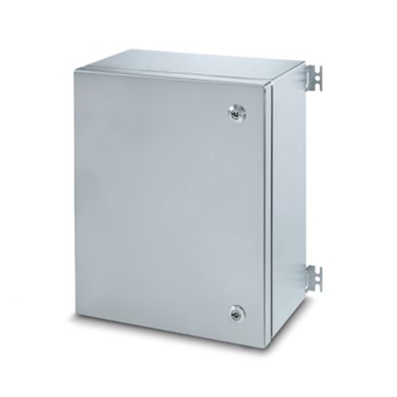 Coffret de commande, avec porte à charnières et bouchon quart de tour, y compris plaque de fond, sans flasques, Matériau: Acier inoxydable 316L / 1.4404, Surface : brossée, argenté, Porte avec charnière