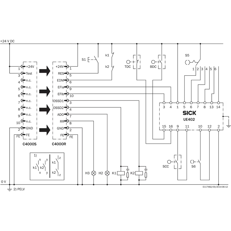 • Contrôle des contacteurs commandés (EDM) et verrouillage de redémarrage (RES)