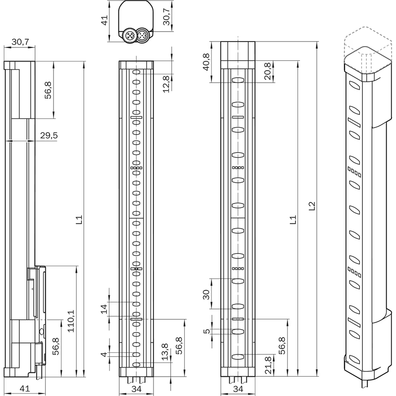 Barrage immatériel de sécurité, Type 4, (Émetteur), Hauteur 1200mm, Résolution 14mm, Portée 2,5m