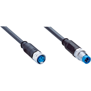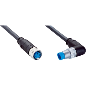 Connecteur / Câble de raccordement; Type : Câble de connexion; Type de signal : Capteur / Actionneur; Raccordement A : Connecteur M8, femelle, droit, 3 pôles, codé A; Raccordement B : Connecteur M12, mâle, coudé, 3 pôles, codé A; Câble : 2 m, 3 fils, PVC; Blindage : Non blindé; Domaine d'utilisation : Domaine...