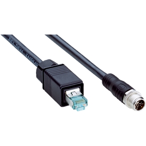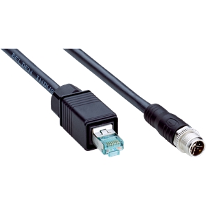 Connecteur / Câble de raccordement; Type: Câble de connexion, M12 x 1 / M12 x 1; Type de signal: Ethernet; Raccordement A: Connecteur M12, mâle, 8 pôles, codé X; Raccordement B: Connecteur M12, mâle, droit, 4 pôles, codé D; Câble: 5 m, PUR, 8 fils (8 x 0.14 mm²), CAT5e, noir; Blindage:...