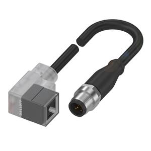 Connecteur / Câble de raccordement; Type: Câble de connexion, Forme CI 9,4 mm / M12 x 1; Raccordement A: Connecteur de vanne C 9,4, femelle, coudé, 4 pôles; Raccordement B: Connecteur M12, mâle, droit, 3 pôles, codé-A; Câble de liaison: Câble PUR, noir, 3 fils...