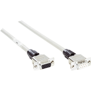 Connecteur / Câble de raccordement; Type: Câble de connexion; Type de signal: RS-232; Raccordement A: Connecteur D-Sub-HD, femelle, droit, 15 pôles; Raccordement B: Connecteur D-Sub, femelle, droit, 9 pôles; Câble: 3 m, 3 fils; Blindage: Blindé
