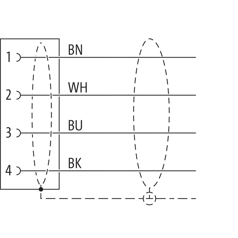 Connecteur / Câble de raccordement; Type: Câble de connexion, M12 x 1, surmoulé; Type de signal: Capteur / Actionneur; Raccordement A: Connecteur M12, femelle, droit, 4 pôles, codé A; Raccordement B: Extrémité de câble libre; Câble: 2 m, 4 fils (4 x 0,34 mm²), PUR sans halogène, noir; Blindage: Blindé; Compatible chaîne porte-câble: Oui; Matériau de l'écrou-raccord: Zinc moulé sous pression; Tension de service: max. 60 V AC/DC; Tension de service (UL listed): 30 V AC/DC; Charge électrique: 4 A; Indice de protection: IP65, IP66K, IP67; Température de service: - En mouvement: - 25 ...+ 80 °C, - En position fixe: - 40 ...+ 80 °C, - Câble : Plage de température (fixe): - 40 ...+ 80 °C