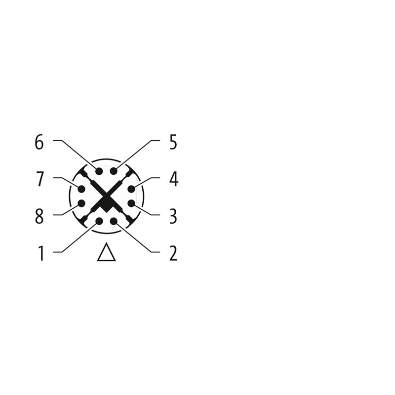 • Raccordement A: Connecteur M12, mâle, droit, 8 pôles, codé-X