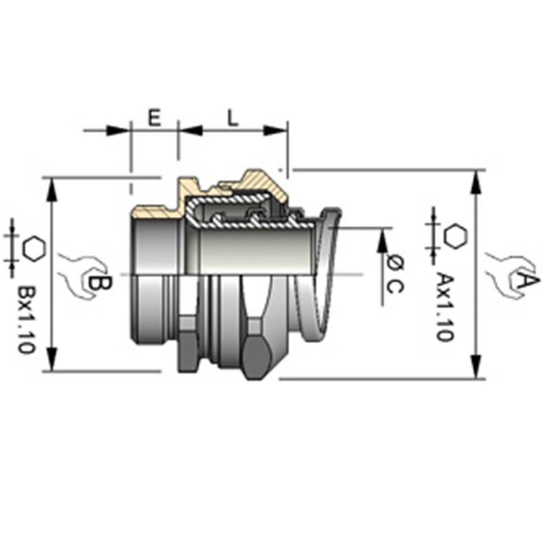 Raccord JUDODIX mâle - laiton nickelé - taille 36 - Pg 36 - IP66 - plage de température -5°C à +80°C