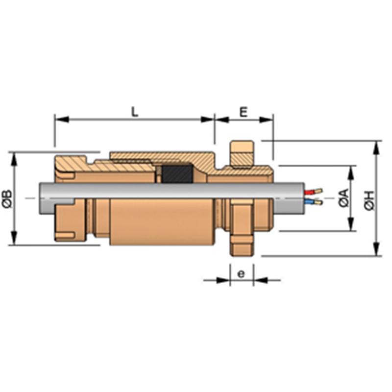 Presse-étoupe BV 2 + Ecrou - laiton naturel - bague néoprène - IP66 - plage de température -40°C à +130°C