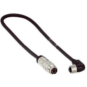 Connecteur / Câble de raccordement; Type: Câble de connexion; Raccordement A: Connecteur M12, femelle, 8 pôles, coudé; Raccordement B: Connecteur mâle, M16, 12 pôles, droit; Câble: 0,4 m, 8 fils, PUR, sans halogène; Description: RS-422, SSI, blindé