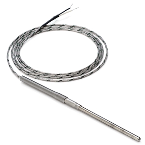 Capteur de température; Forme: Tube lisse; Type: Thermocouple K; Plage de température - 80 ... + 1100 ° C; Diamètre: 1 mm; Longueur: 100 mm; Materiau du tube de détection: INCONEL 600; Raccordement: 2 fils, pré-câblé avec cosses, 2 m; Série: E52-E