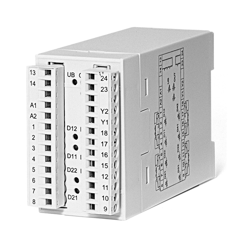 • Indicateur LED: 1 indication LED Power (UB) verte, 1 LED sortie de sécurité (OUT verte/rouge), 8 indications d’état par LED (Dx1 / Dx2 / verte / rouge)