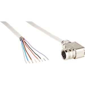 Connecteur / Câble de raccordement; Type: Câble de connexion, M12 x 1; Raccordement A: Connecteur M12, femelle, 8 pôles, coudé; Raccordement B: Extrémité de câble libre; Câble: 10 m, 7 fils, PUR, sans halogène; Blindage: Blindé; Homologations: Composant homologué par UL selon la norme AWM 20549 (80 °C...