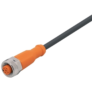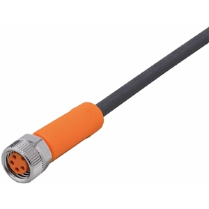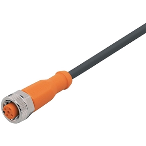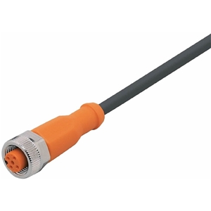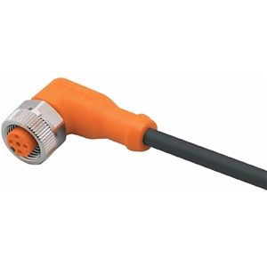 Câble avec prise femelle; AC/DC; Tension d'alimentation < 30 V; 10 m PUR-Câble; M12 Connecteur; 10 m; PUR; oui; Sans silicone; Sans halogène; contacts dorés; câble blindé; Aptitude pour des câbles en mouvement; Connecteur femelle coudé; M12; 5 pôles