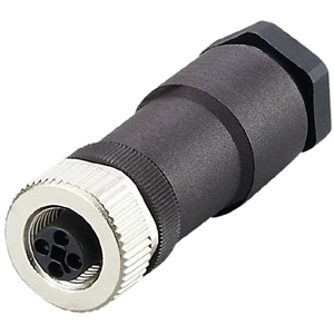 Connecteur confectionnable, M12 x 1 (A), Femelle, Droit, 5 pôles; Bornes à vis (x4) <0,75mm², pour câble Ø6-8mm (< < 45 AC / < 70 DC)