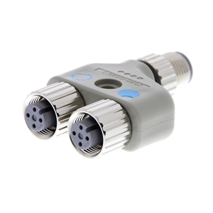 Connecteur / Câble de raccordement; Type: Répartiteur en Y; Raccordement A: Connecteur M12, mâle, 4 pôles, codé A; Raccordement B: Connecteur M12, femelle, 4 pôles, codé A; Raccordement C: Connecteur femelle M12 4 pôles, codé A; Description: Répartiteur en Y, 2 connecteurs femelles M12, 4 pôles, droits,...