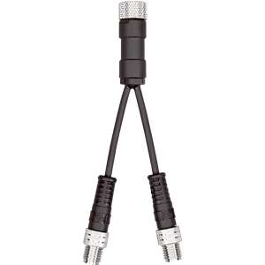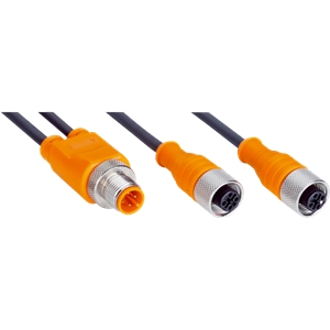 Adaptateur en Y: 2* M12, 3 pôles -> M12, 4 pôles; Adaptateur en Y:; 2* M12, femelles droit 3 pôles; M12 mâle droit 4 pôles; Câble 2m PUR sans halogène