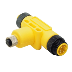 Connecteur / Câble de raccordement; Type: Coupleur en T: 2x M12, 4 pôles > M12, 4 pôles; Coupleur en Y; Raccordement A: Connecteur mâle M12, droit, 4 pôles; Raccordement B: 2 connecteurs femelle M12, droit, 4 pôles