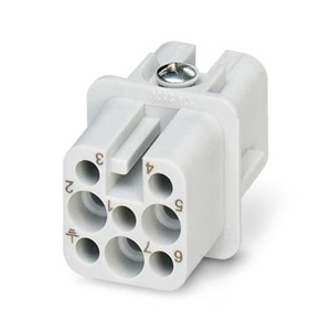 Élément de contact, nb. de pôles: 7+PE, taille: D7, nb. de raccordements par pôle: 1, Connecteur femelle, Raccordement à sertir, 250 V, 10 A, 0,14 mm² ... 2,5 mm², Pour boîtiers plastiques uniquement