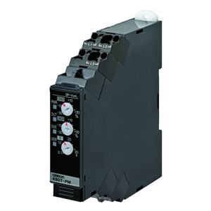 Relais de surveillance 17.5mm de large, sur / sous tension, asymétrique, séquence de phase et perte, 3 phases 3 fils, 200 à 240 VAC, 1 x Transistor