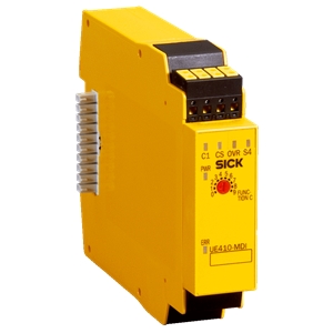 Système de commande de sécurité; Module: Module principal; Applications: Expert inhibition (muting); Entrées: 2 entrées de sécurité, 2 entrées de commande, 4 entrées d'inhibition (muting); Sorties: 2 sorties de sécurité, 2 sorties de test, 2 sorties d'état; Raccordement: Borniers à vis...