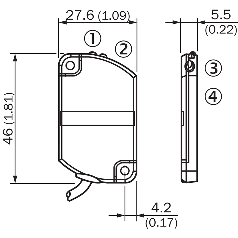• Dimensions (l x H x P): 28 mm x 46 mm x 5,5 mm