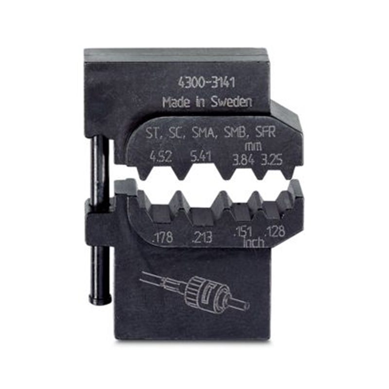 Matrice, pour Crimpfox-M, pour connecteurs mâles coaxiaux/fibre optique : ST/ SC/ SMA/ SMB/ SFR/ conditionnée dans une boîte de rangement juxtaposable