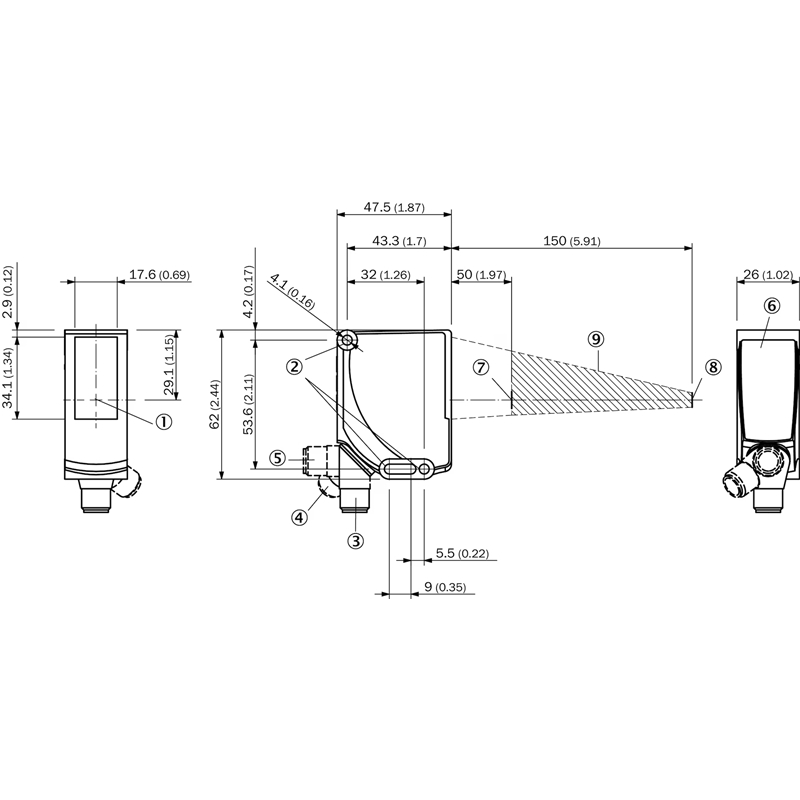 Détecteur de couleur; Format: Parallélépipédique; Sortie (canal): - 2 matériels sorties de commutation, - 24 sorties de commutation virtuelles via IO-Link; Distance de détection: 50 mm ... 150 mm; Source d'émission: LED, RGB; Taille du spot lumineux: Ø 3,5 mm ... 6,5 mm; Émission de lumière: Côté long du boîtier; Sortie de commutation: Push-pull (PNP/NPN); Interface de communication: IO-Link; Raccordement: Connecteur mâle M12, 5 pôles; Temps de réponse: 120 µs; Fréquence de commutation: 4 kHz; Tension d'alimentation: 10,8-28,8Vdc; Dimensions (l x H x P): 26 mm x 62 mm x 47,5 mm; Matériau du boîtier: Plastique, VISTAL®; Matériau de l'optique: Verre; Indice de protection: IP67; Température de fonctionnement: –20 °C ... +55 °C; Série: CSS High Resolution